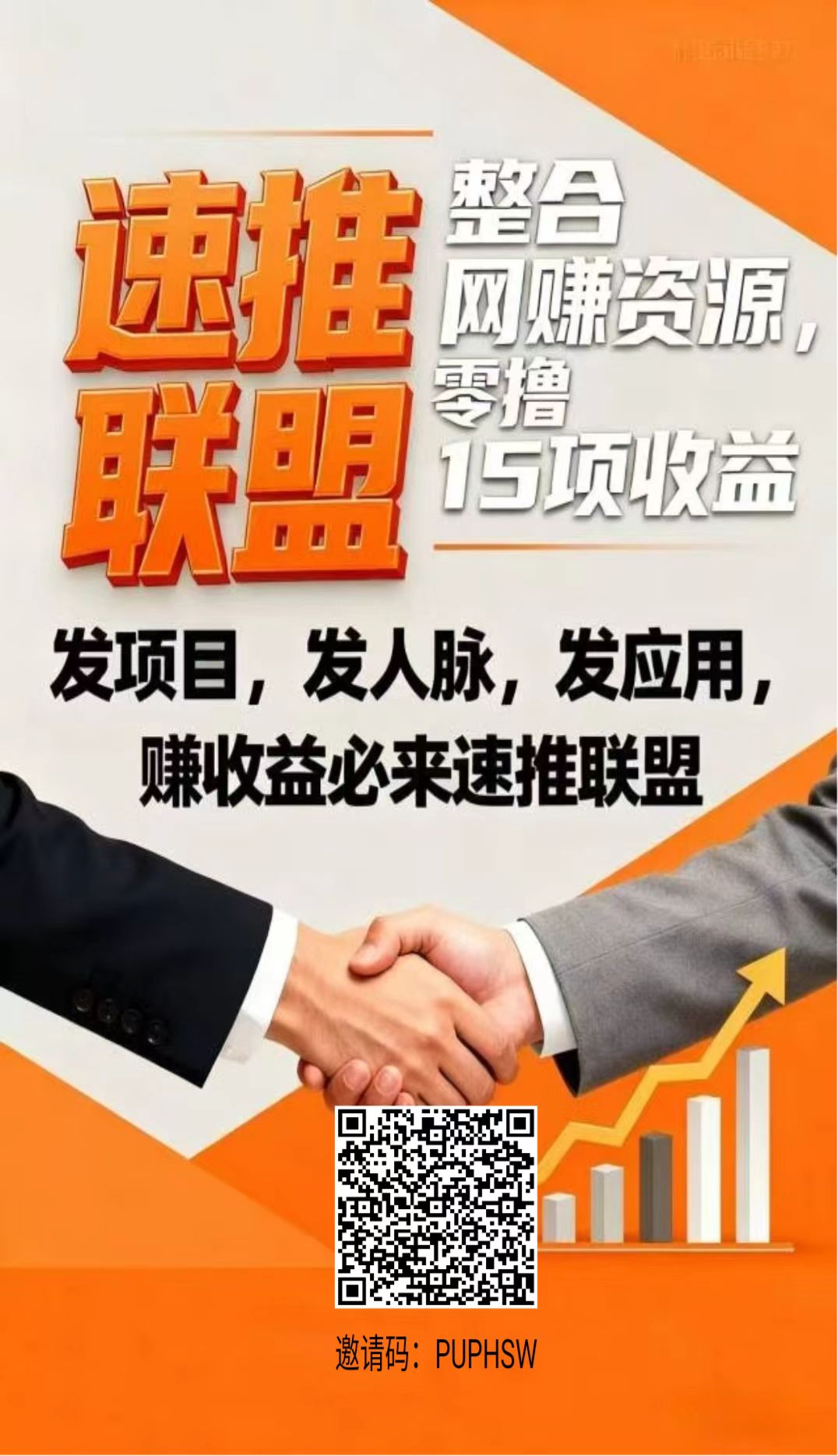 速推联盟是一家集发布项目、发布人脉、发布应用、发布轮播图、任务搜索、悬赏任务、游戏试玩、语音红包、阅读赚钱为一体的大型广告引流平台