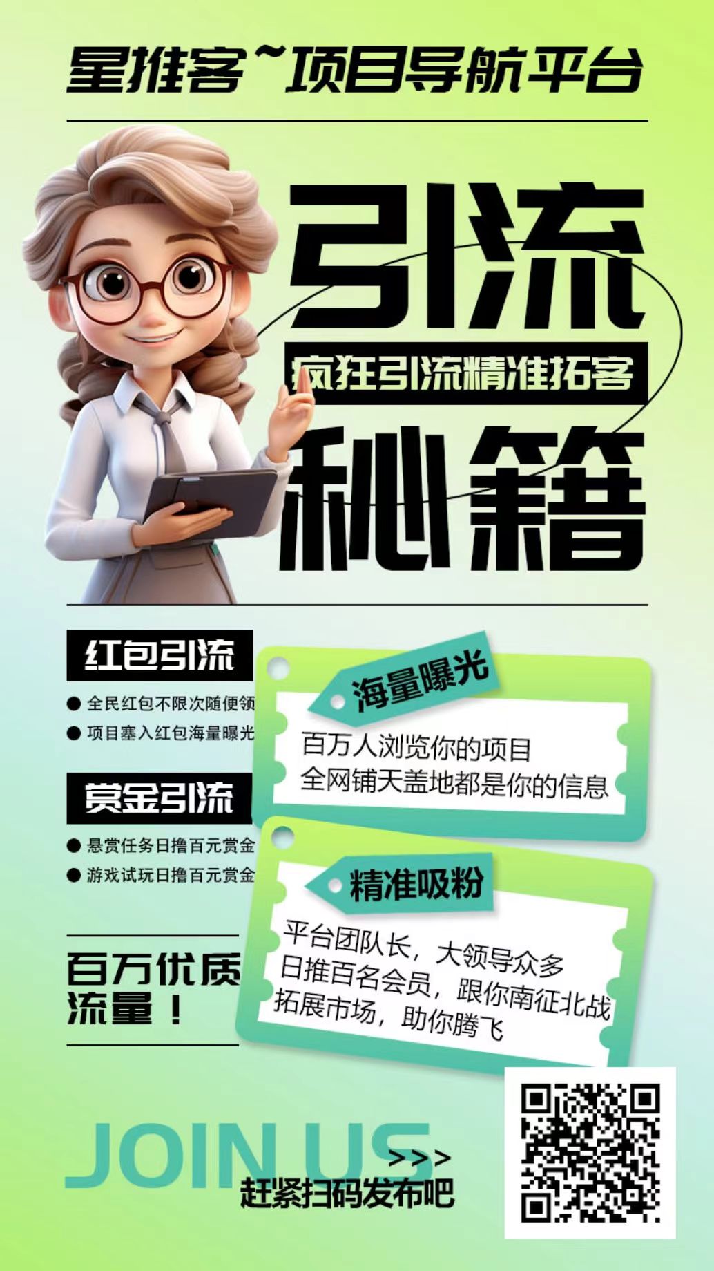 星推客是一款广告分发、广告发布、任务悬赏、课程分享等多元化的聚合平台。 主营业务有: 1、广告分发;每天看10条广告赚收益,免费加入滑落梯队,每日最高收益可达万元。 2、悬赏任务;做简单任务赚高佣金。 3、知识付费课程;平台课程数量多,覆盖各类领域,可以有效降低学习成本,提升学习效率。 4、项目资讯发布;以图文并茂的方式发布各类文章资讯广告,为商家引流拓客,提升知名度 5、软件应用发布:以软件品牌的方式发布各类软件应用类广告,增加品牌曝光,拓客效果好。